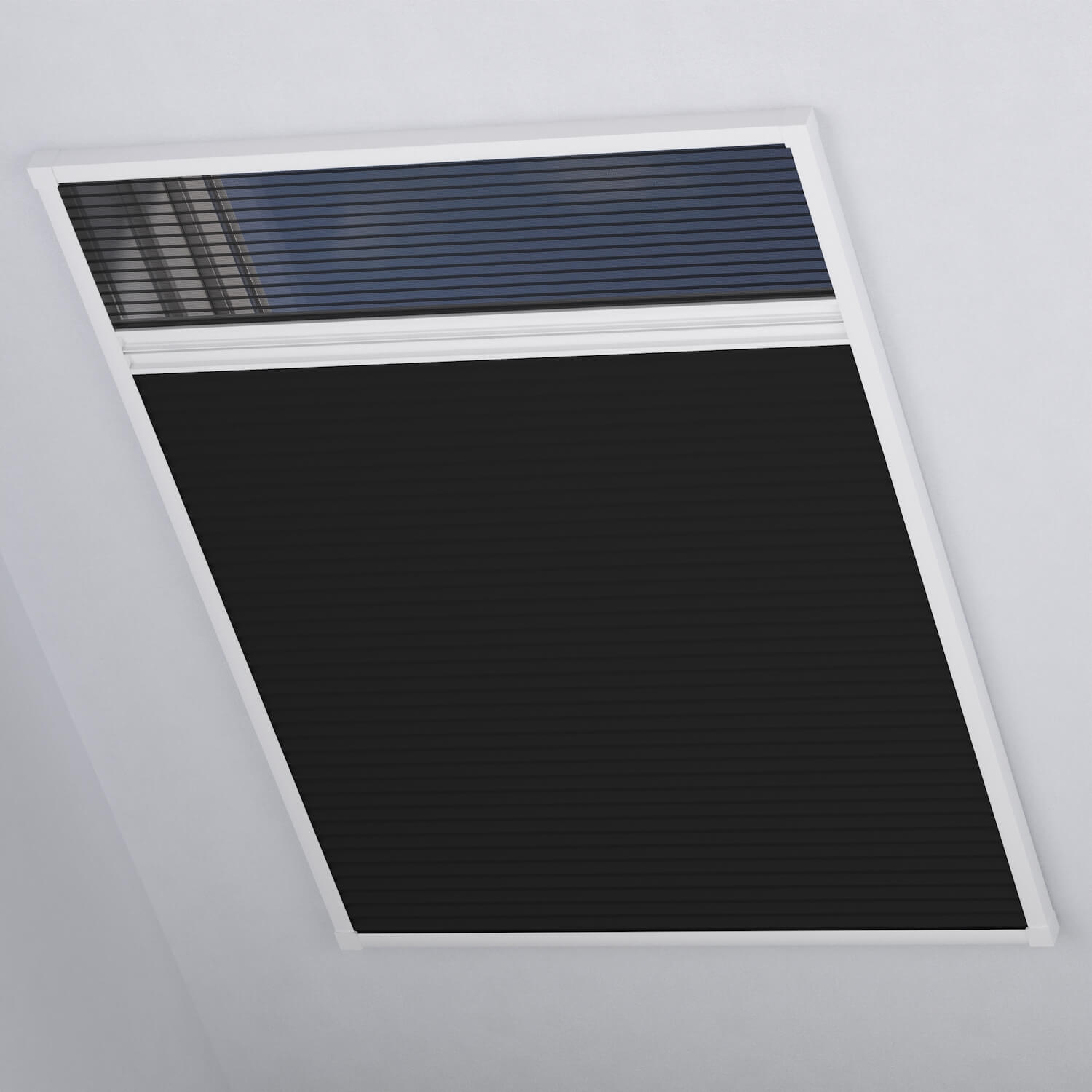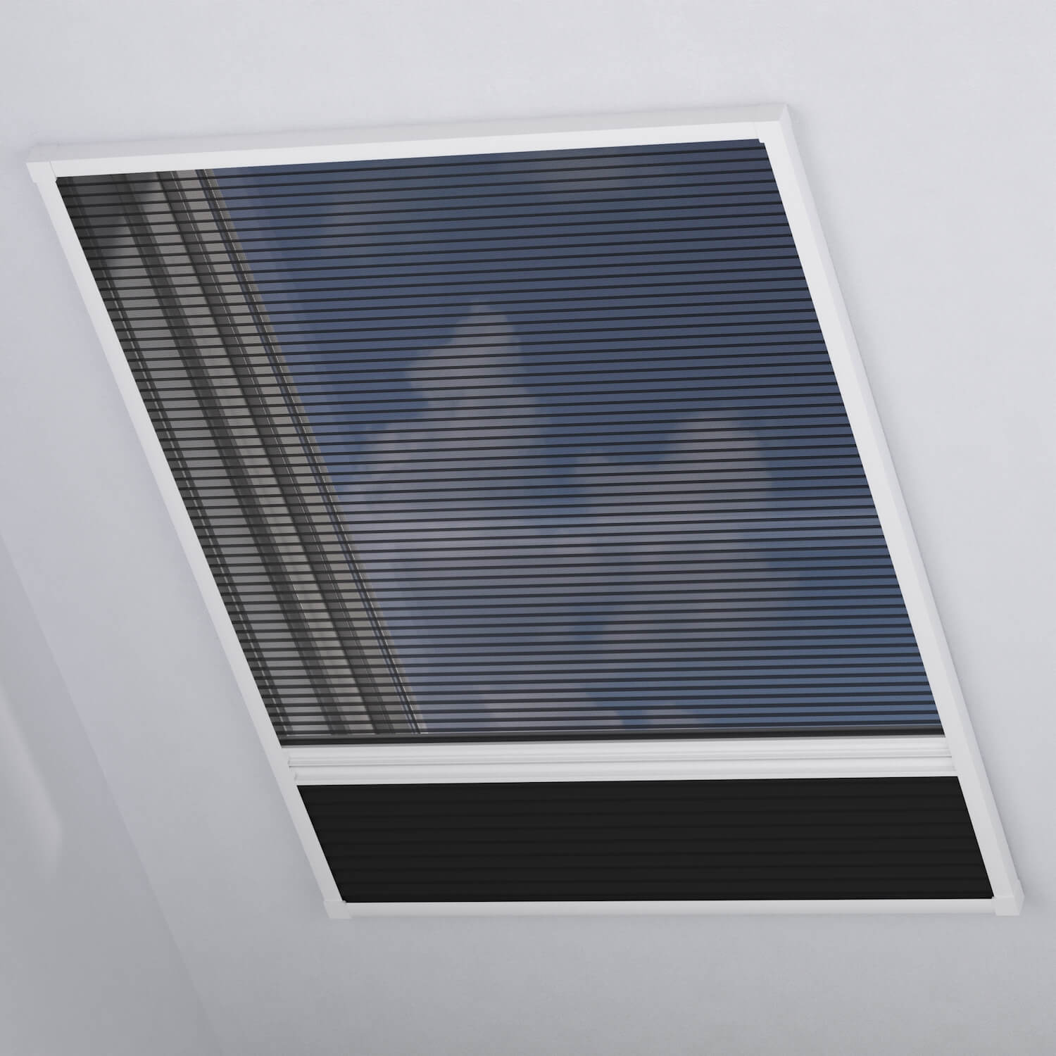 Ce store plissé avec moustiquaire est particulièrement adapté aux fenêtres de toit. Ce système permet de faire rentrer l’air frais dans une pièce, tout en empêchant les insectes d’y entrer. Le tissu occultant assure aussi que la lumière du jour ne puisse pas entrer. Grâce à la structure du tissu en nid d’abeille, la toile a d’excellentes propriétés isolantes. Cet effet est assuré par le revêtement argenté à l’intérieur du tissu en nid d’abeille. Il est facile de raccourci le store en largeur et en hauteur et, selon le type de fenêtre, il peut être facilement monté sur le mur autour de l’ouverture de la fenêtre.