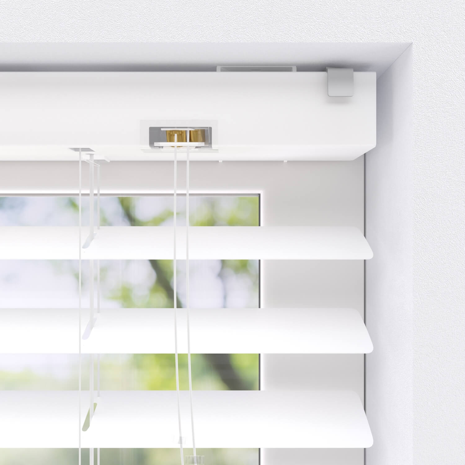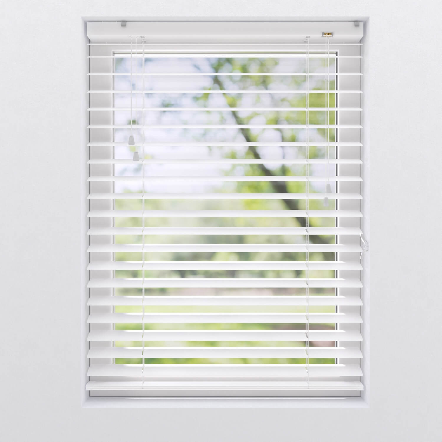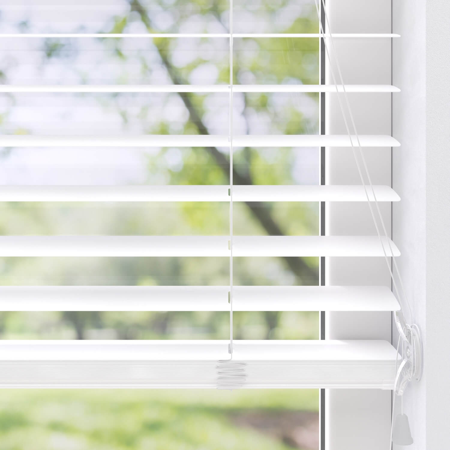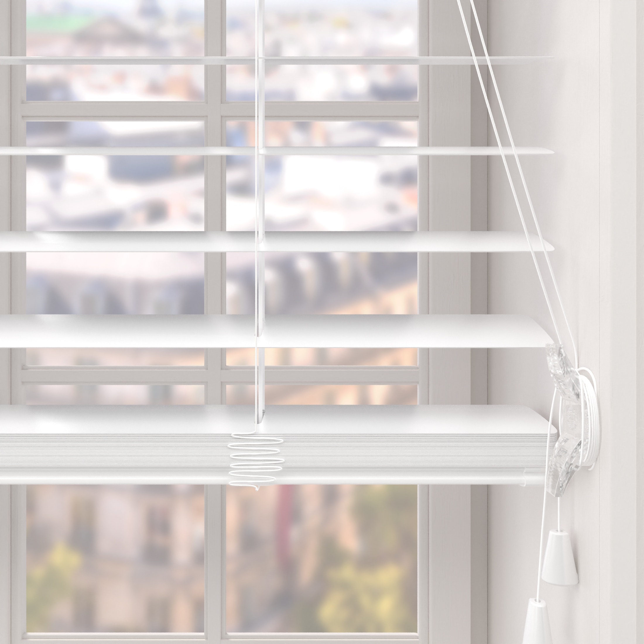Store vénitien aluminium blanc – Apportez élégance et modernité à votre intérieur avec ce store vénitien aux lames de 50 mm. Grâce à son aluminium robuste et sa finition mate, il est durable et facile à entretenir. Orientez simplement les lames pour ajuster lumière et intimité selon vos envies.