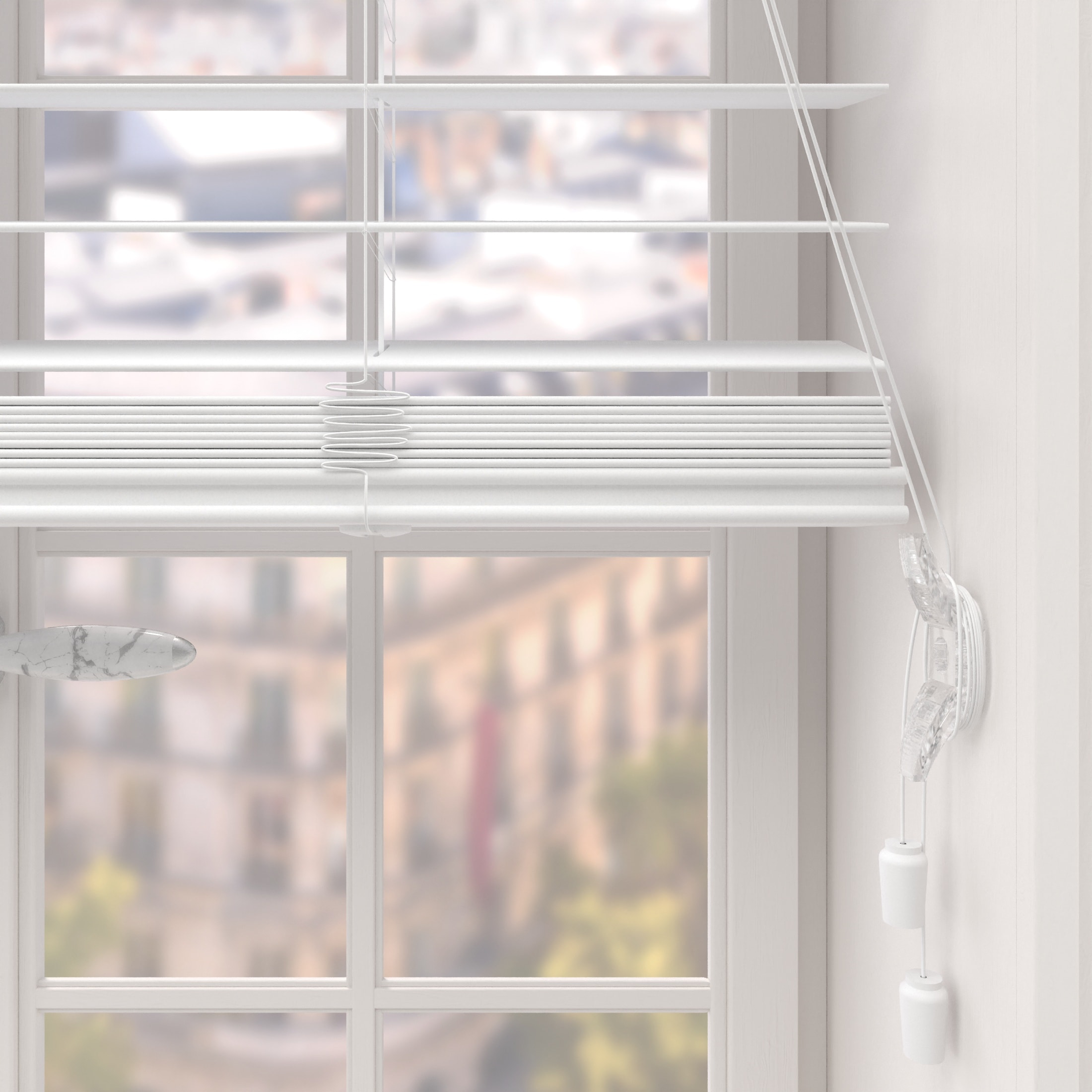 Store vénitien bois blanc – Apportez luminosité et élégance à votre intérieur avec ce store vénitien en bois blanc. Conçu en bois durable, il allie robustesse, authenticité et raffinement. Sa teinte blanche met en valeur une ambiance claire et apaisante, tout en vous offrant un contrôle précis de la lumière.